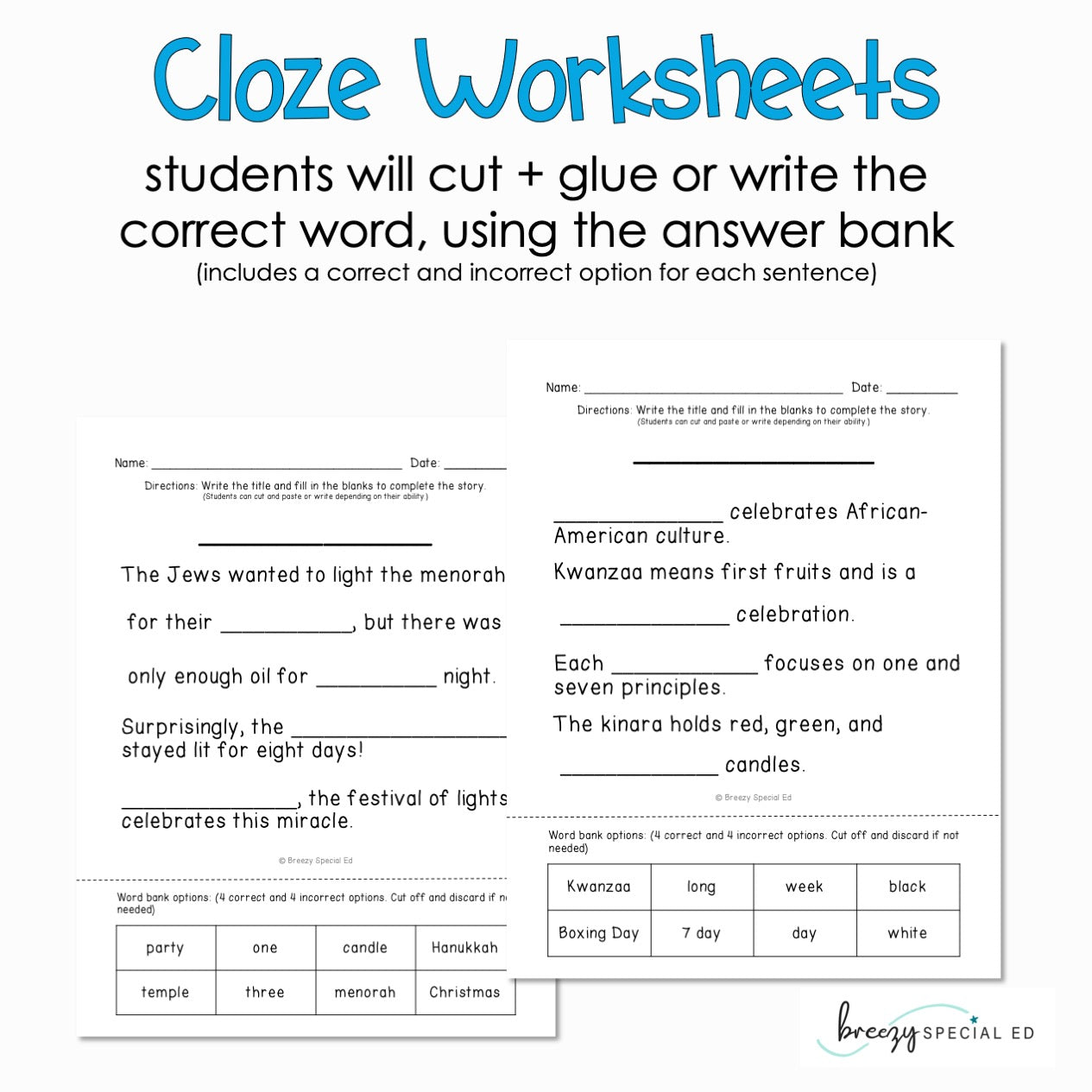 These life skill reading passages are all about winter holiday celebrations, specifically: Christmas, Hanukkah, and Kwanzaa. There are 10 different stories along with reading comprehension activities for each included in this packet.