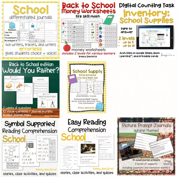 This bundle includes all Back to School themed Breezy Special Ed resources!