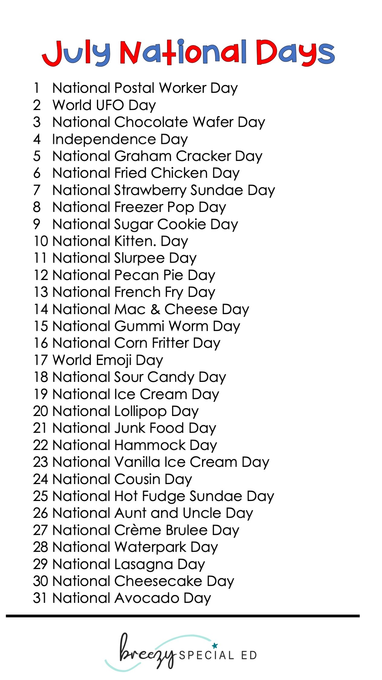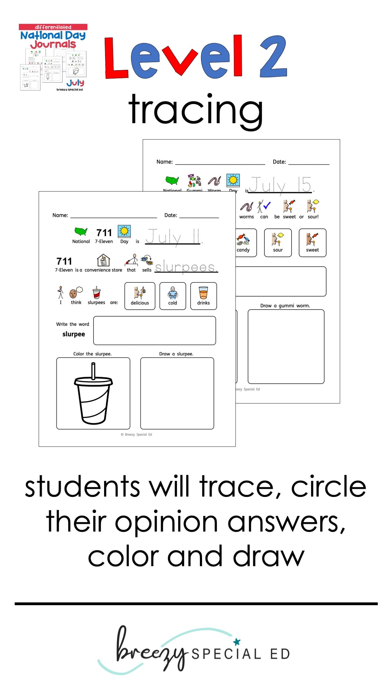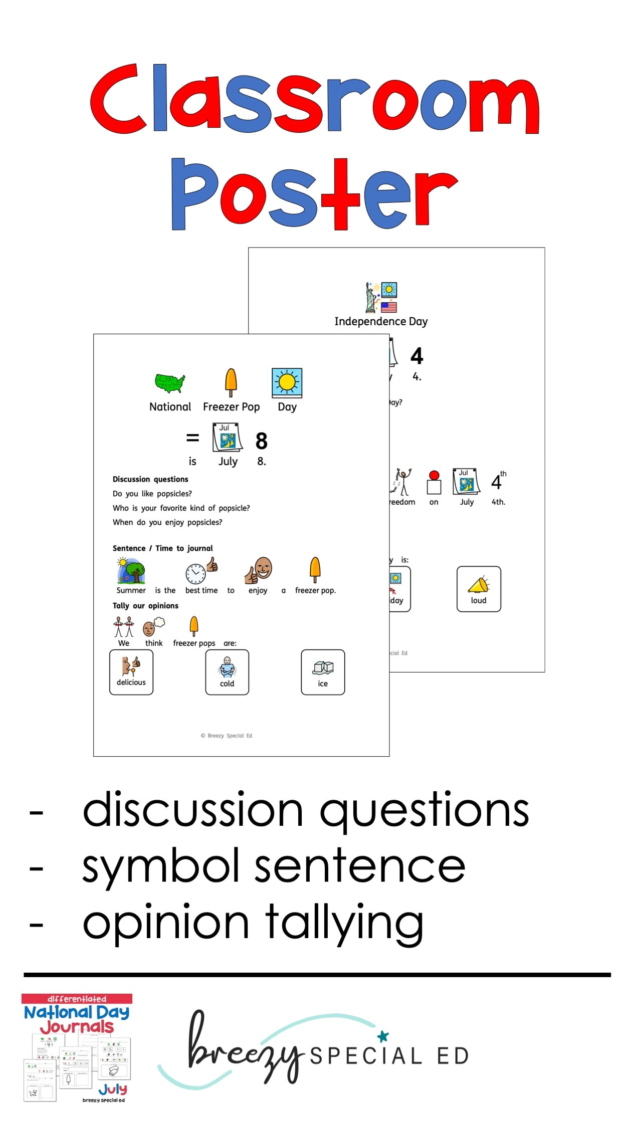 Celebrate each day in July with these symbol supported national day posters and journals! (Summer months are HALF OFF!)